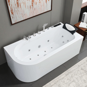 อ่างอาบน้ำอะคริลิคทรงสี่เหลี่ยมผืนผ้าแบบยืนเดี่ยวอ่างน้ำวนอ่างนวดพร้อมหัวฉีดอากาศและน้ำสำหรับบ้าน